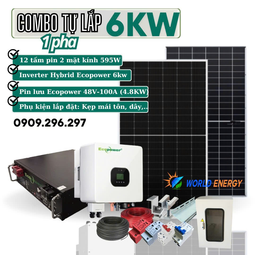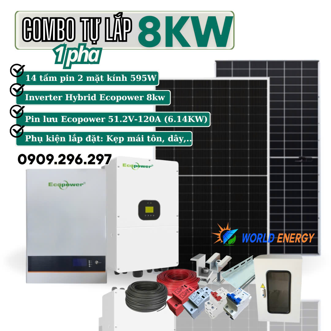 - Bộ biến tần lưu trữ (Hybrid) Ecopower 8KW: 1 bộ